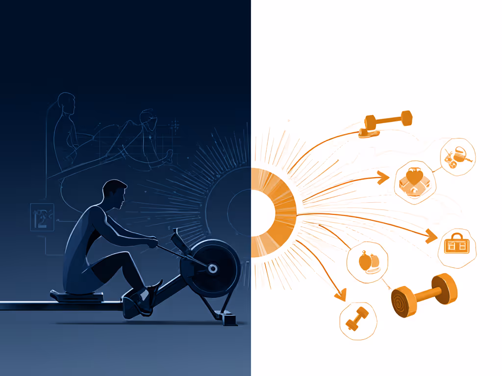 The biomechanics explain why: Rowing's triple-extension hip drive activates 86% of your muscle mass, creating neural pathways that transfer directly to compound lifts. For a quick primer on rowing's full-body benefits, see our full-body rowing benefits guide. When you pair resistance training with rowing, you're not just adding modalities, you're programming complementary energy systems. Steady-state rowing builds aerobic capacity while strength work develops power output, creating a metabolic environment where adaptation occurs faster.