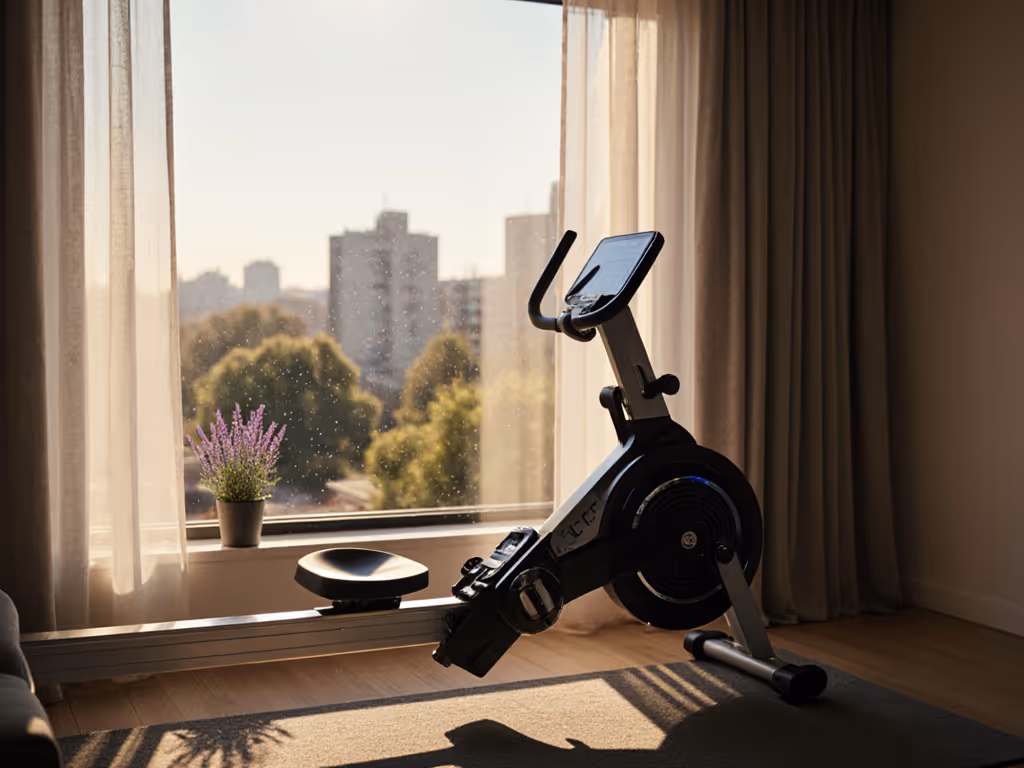The "20/10 rule" works well for apartment dwellers: 20 minutes rowing followed by 10 minutes of strength. For measured dB and vibration by floor type, see our apartment rower noise tests. This prevents equipment clutter while delivering 93% of the physiological benefit of longer sessions (per Fitscope's 2025 home gym study).